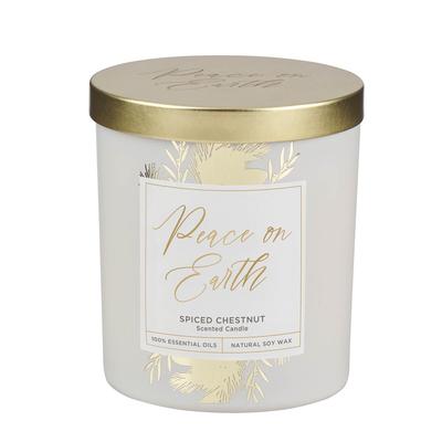 Glass Candle with Metal Lid Peace on Earth