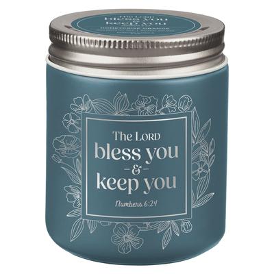 Glass Candle W/Screw Top Lid Blue Bless You and Keep You Num. 6:24