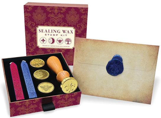 - Elegant foil-accented Sealing Wax Stamp Kit package is perfect for gift-giving.